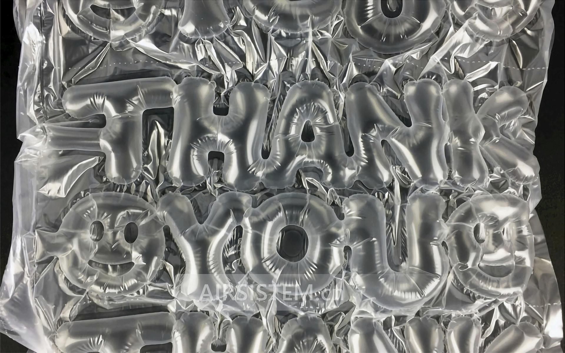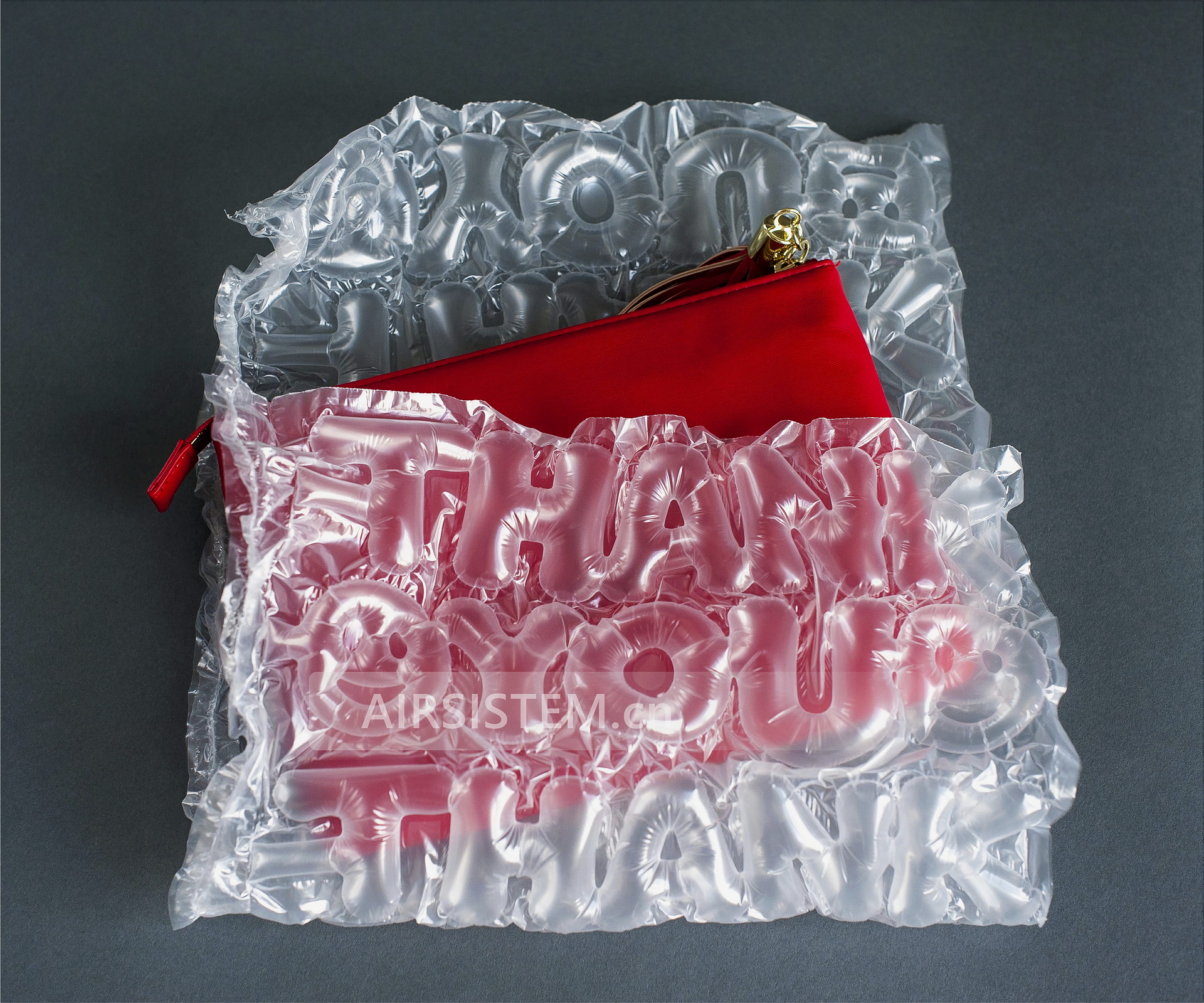 祝福语缓冲气泡膜是在普通卷膜的基础上,通过模具将卷膜压制出不同的字母形状,达到更好的开箱体验。缓冲气泡膜主要用于产品包裹,保护包装,吸收各个方向的冲击,为产品提供出色的缓冲保护。AIRSISTEM气泡膜由95%的空气及5%的复合材料构成,充气前完全平整,体积小不占空间,使运输,存储和使用更具成本效益。