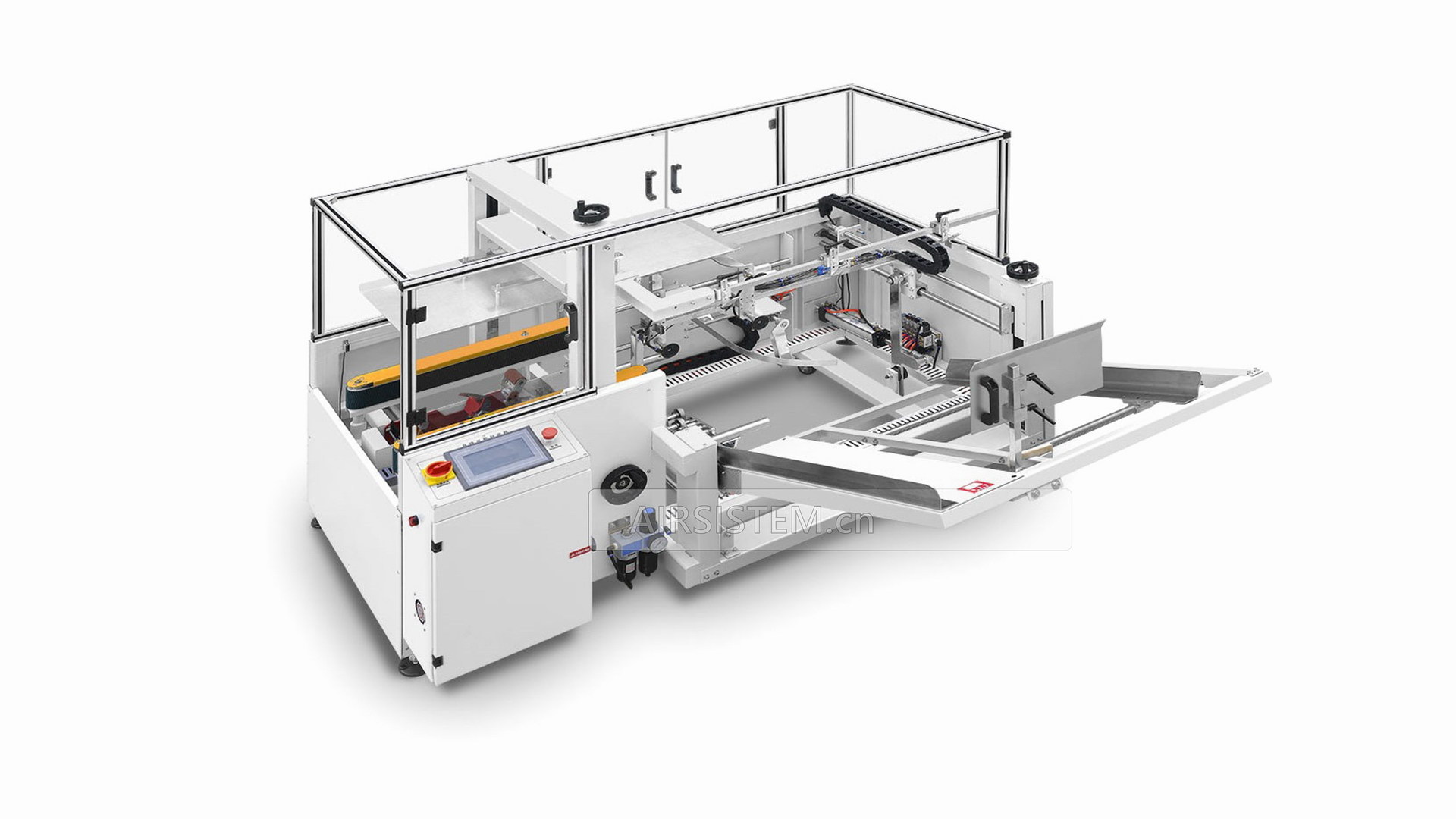 开箱自动成型封底机MEYPACK20T是立式开箱机,速度达到8-12箱/分钟,机器采用PLC+人机界面控制,折底不停留,输送中自动完成折底、封底;同时完成吸箱、成型、折底、封底整个过程。操作方便、维修简单、性能稳定。